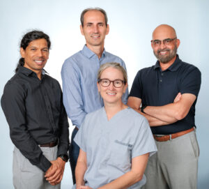 Left to right: Sam BaskarJesudasan, Data Scientist, PHC, Zoltan Bozoky, Director of Software Engineering, Dr. Jen Ellis, Radiologist, and Faisal Aziz, Senior Manager, OSR and Department of Medicine.